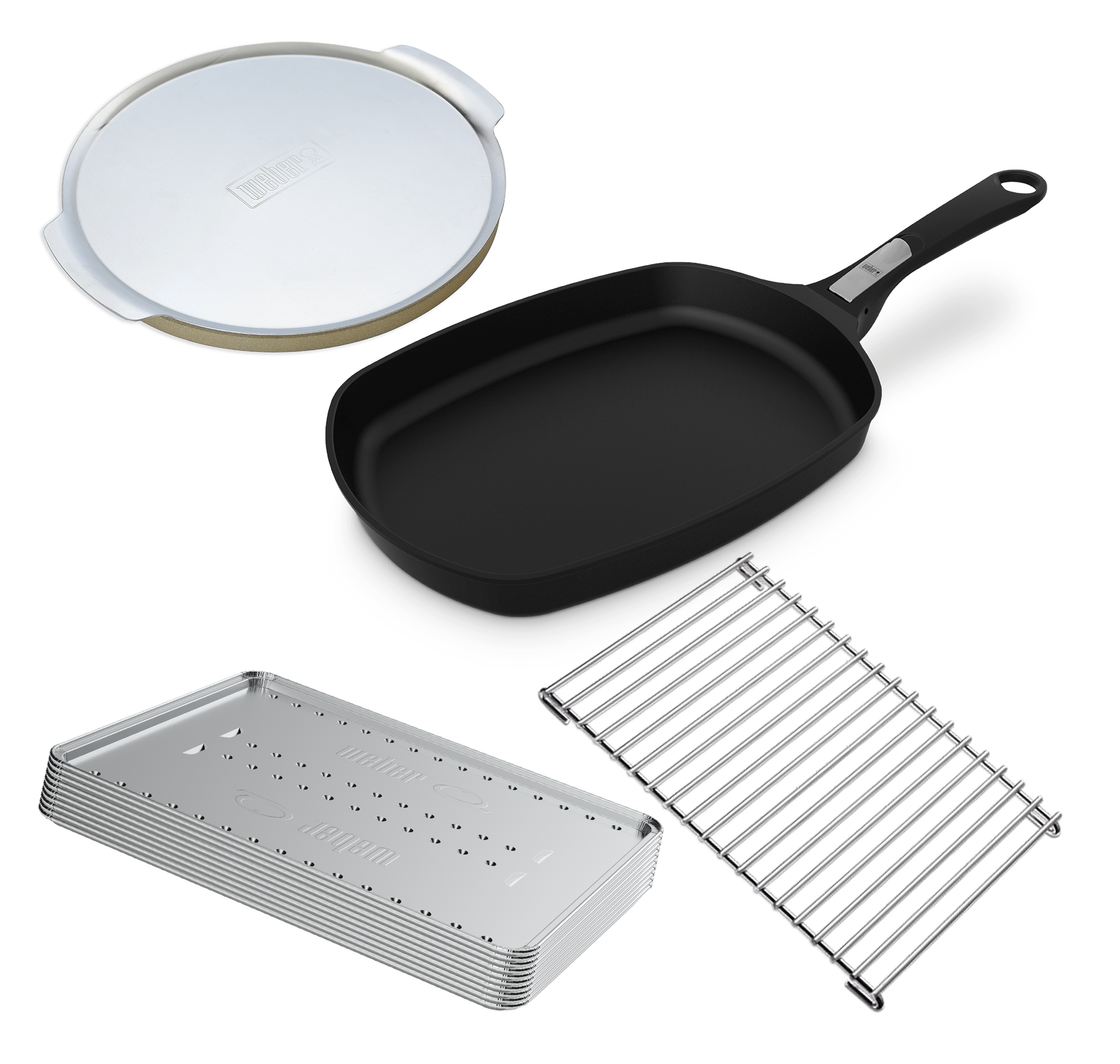 Explore a range of cooking possibilities with this starter pack for your Baby Q barbecue. Whether you’re frying eggs and pancakes for breakfast, baking a brownie for morning tea, cooking up a pizza for lunch or roasting a chicken for dinner, this starter pack has all you need. This pack features a roasting trivet and 10 convection trays, a pizza stone with pizza tray and a frying pan with detachable handle – all specially designed and tested for use in your Baby Q gas BBQ.
