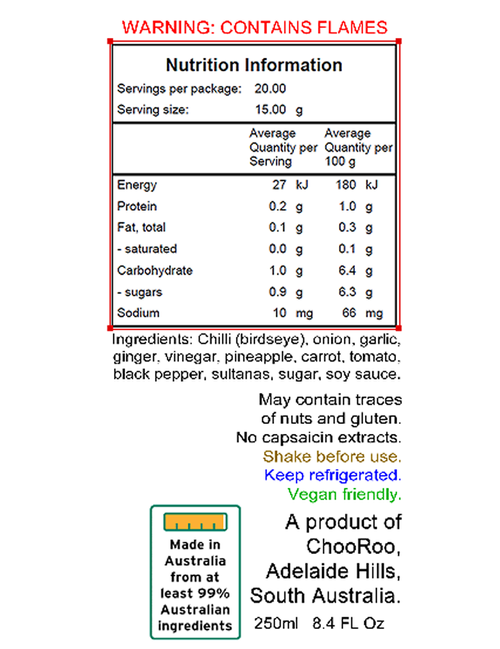 Fruity and tangy made from using popular Birds Eye chilli with a subtle hint of tropical flavours and a healthy whack of cracked black pepper.