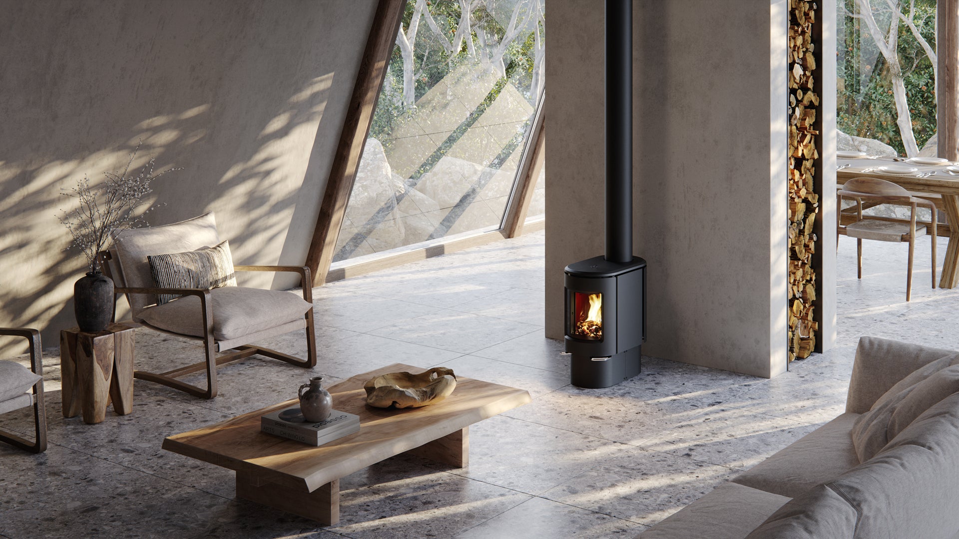 Nectre Form 1 is a fresh and novel take on what a combustion heater can look like, and the only wood heater in the Australian wood heating landscape with its narrow yet deep form factor. The sleek capsule shape is resolved with cast iron, high quality stainless steel controls and curved glass, which offers a wider view of the flames, impressive performance and heating efficiency. The outside air capability and ability to cook on the top plate will make Form 1 especially attractive for compact, eco-friendly housing designs, and make it a better fit for newly constructed housing in general.