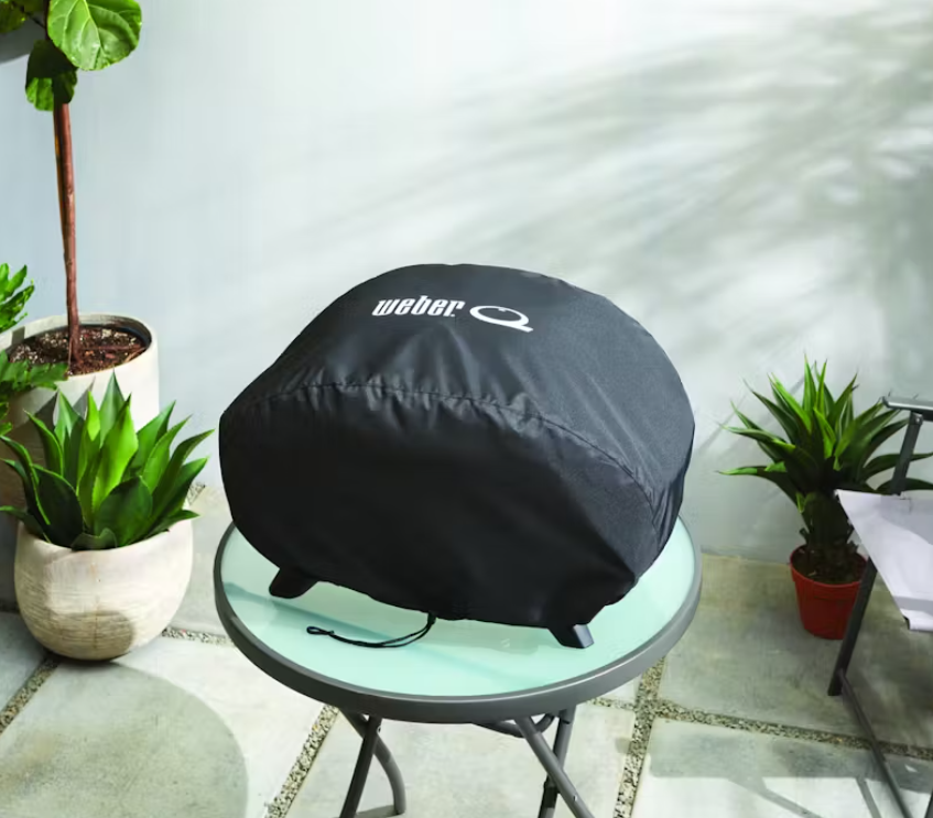 Keep your Weber Q in top shape and protect it from the harsh outdoor elements with this Q premium BBQ cover. It includes a fastening draw cord to keep it from blowing off, and its lightweight, durable material is water and UV resistant.