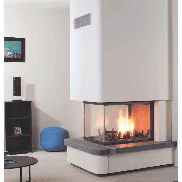 Spectacular from any angle, the French designed and made Axis EPI950 three sided wood fireplace will create an unsurpassed ambience with its unique characteristics of being either an open or slow combustion heater and its unconventional glass viewing area. With it’s high quality three sided panaromic steel firebox and elegant glass doors, the luxurious Axis EPI950 three sided wood fireplace is sure to be a real show stopper in any designer space.