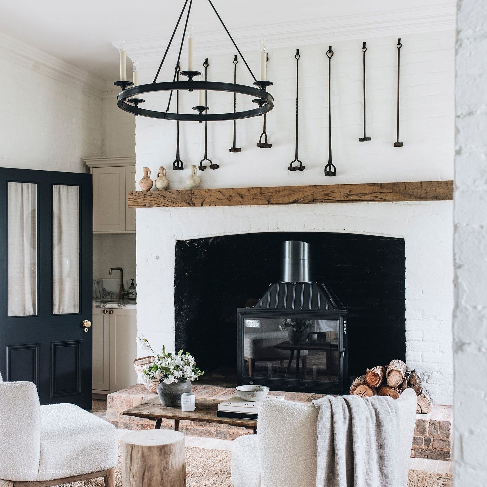 Minimum 500mm in front of any part of the fireplace, 250mm either side and 75mm thick