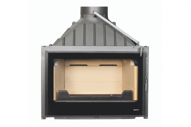 Seguin Visio 8 Plus Cast Iron Fireplace - Swing Door - Lift - Black Line Glass - Brick Lining