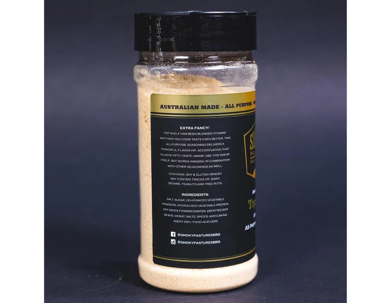 Smoky Pastures Top Shelf All Purpose Seasoning Rub has been designed to enhance the flavour of every dish you prepare. This all-purpose seasoning packs a punch of flavour. Bringing forth Umami, the elusive fifth taste. This rub is great on its own, but it also goes well with other seasonings.