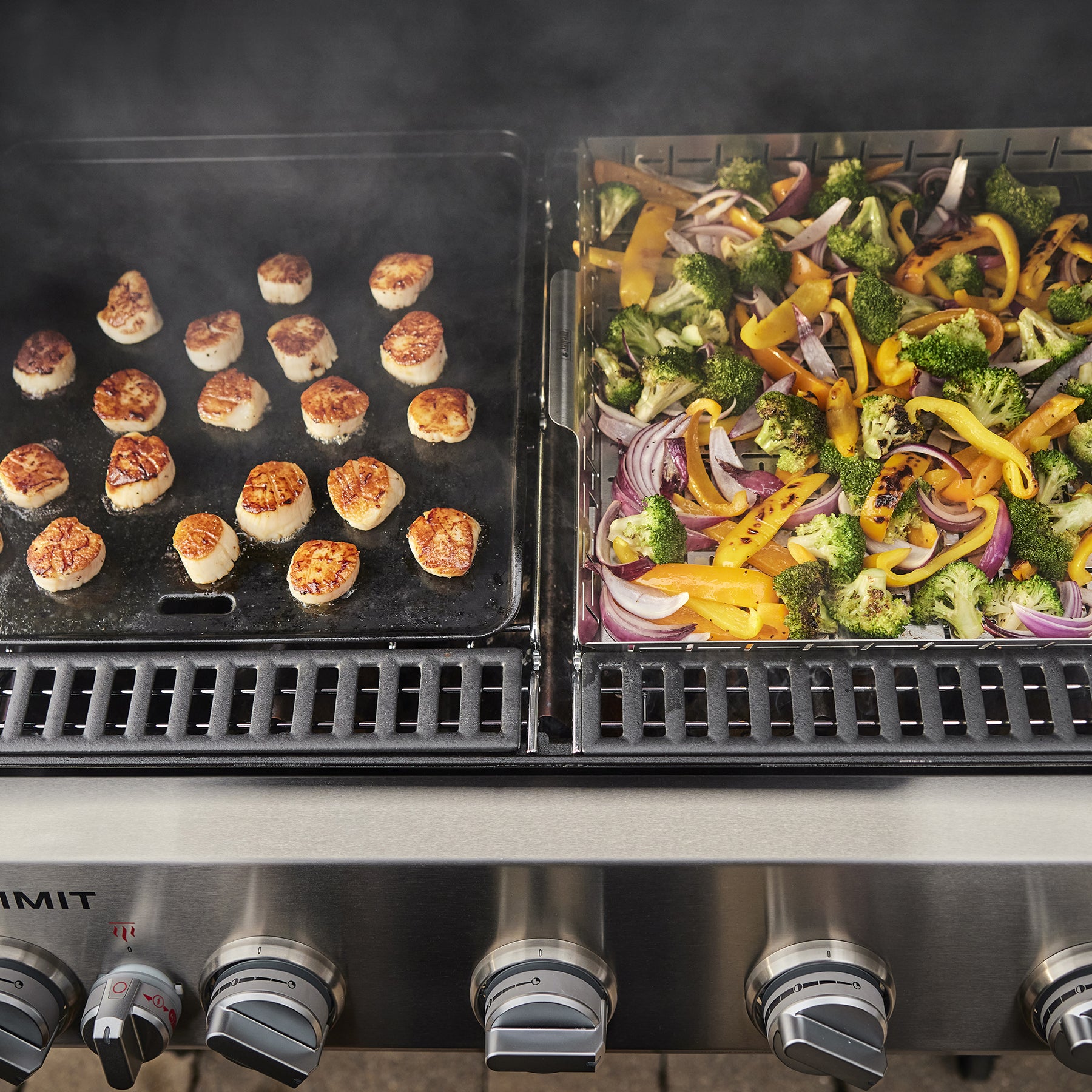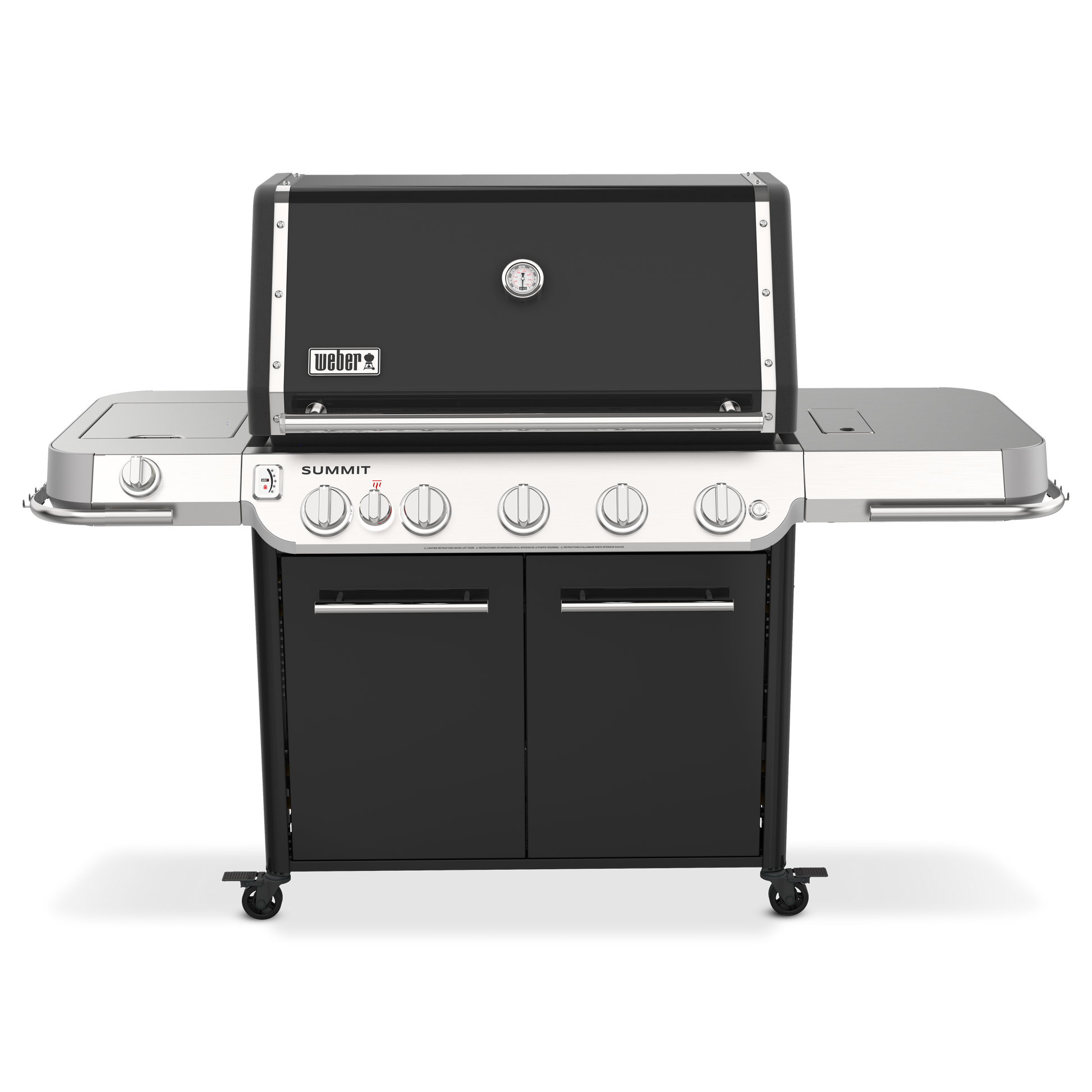 Step up to the Summit® - our top-of-the-line gas barbecue, reinvented with features that expand your outdoor cooking techniques and enable you to entertain at a higher level. The top-down, high-heat infrared burner directs blazing heat onto the top of food, producing an edge-to-edge caramelised crust that seals in flavor. Light up the stainless-steel smoker box to give your food a low-and-slow, smoky boost and break out of your routine with an integrated rotisserie. This 5 burner BBQ is equipped with the WEBER CRAFTED cooking grates and frame kit that lets you transform your grill into a griddle, pizza oven, wok, and more with a variety of custom-fit accessories (sold separate). Bring the kitchen outside and create delicious food that makes every gathering memorable.