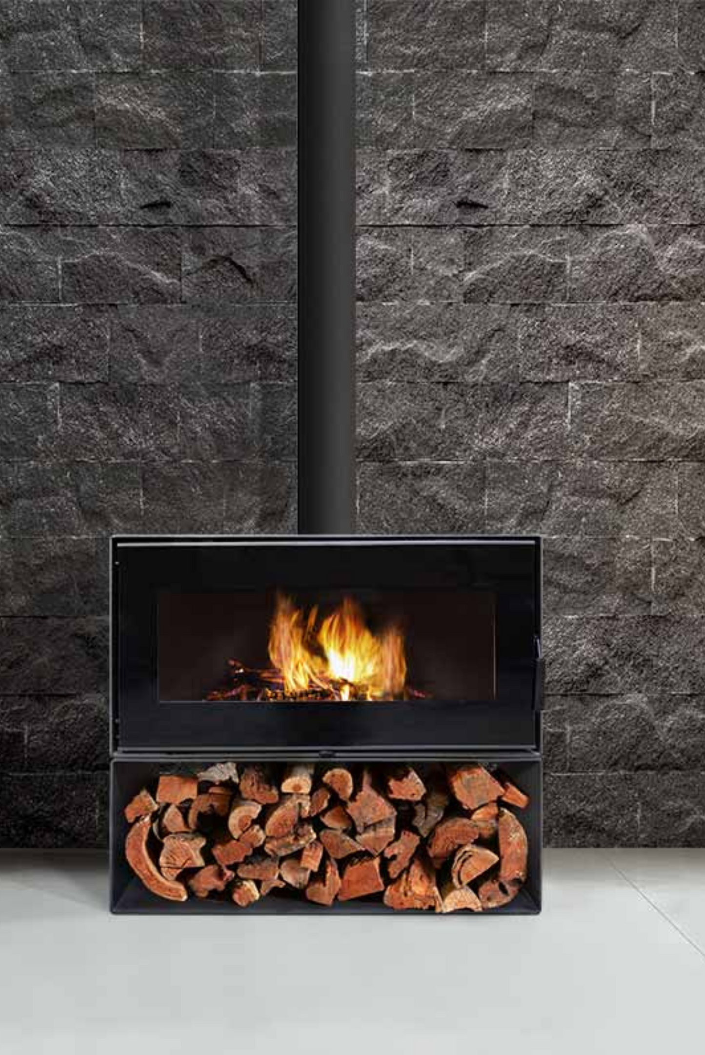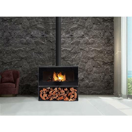 The rectangular fireplace is distinguished by its high-quality materials and is offered in 3 different models (freestanding with base, freestanding with no base or inbuilt) fitting into any space with ease.