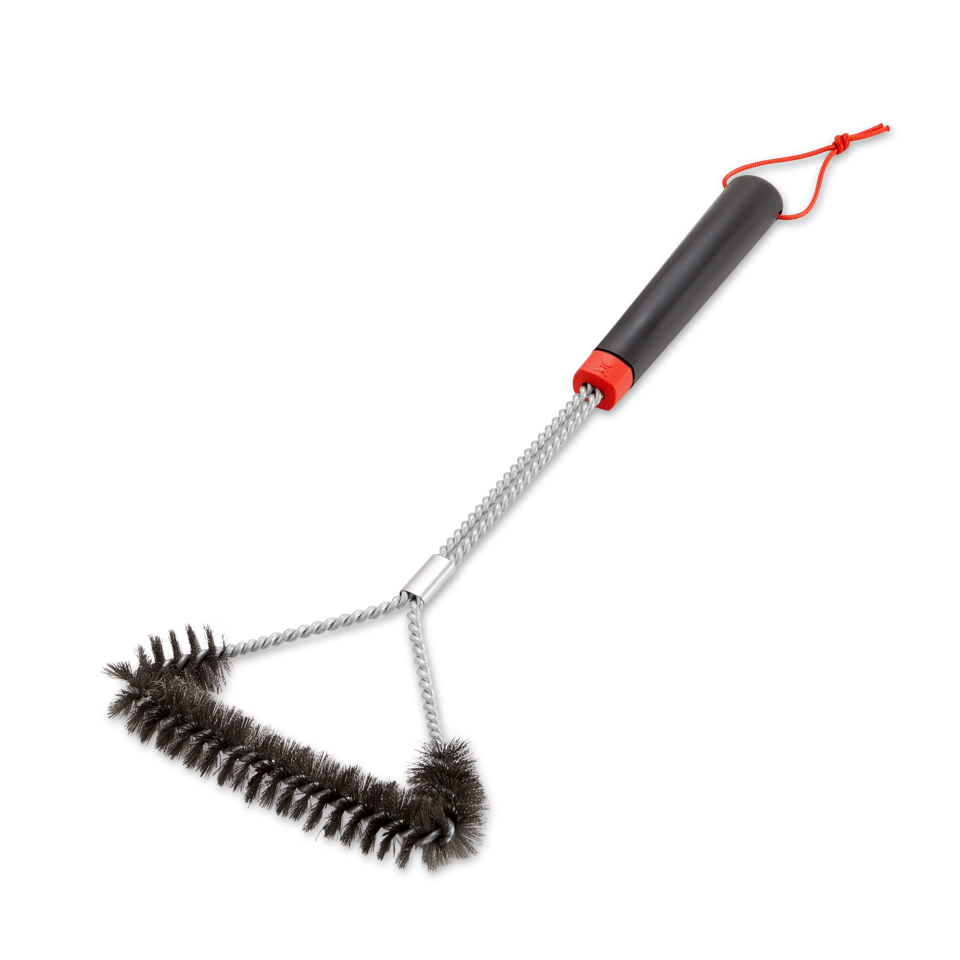 This three-sided grill brush is made to remove grease and debris from cooking grills of all sizes. The handle design provides a secure grip when brushing off stuck-on food or cleaning tight spaces. Use this grill brush to clean your grills before each use so that your barbecue lasts longer and your next meal is as delicious as the one before.