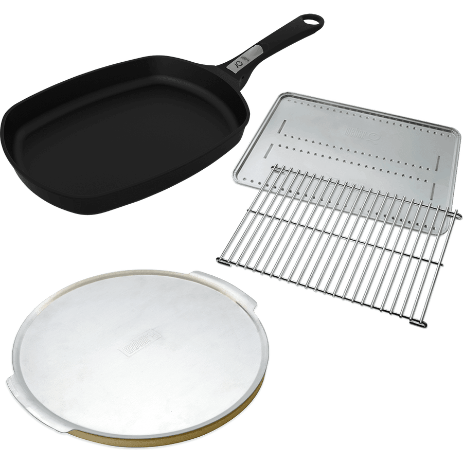 All of your barbecue essentials in one handy pack. Now your Weber Family Q can roast the most succulent meats and vegetables, bake incredible dishes, cook perfect pizzas and so much more when using the accessories in the Weber Family Q Essentials pack.