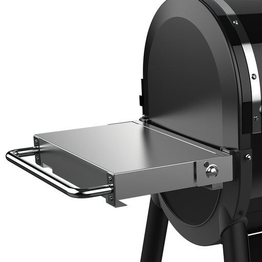 Prep, serve, and keep barbecue tools within reach with the SmokeFire stainless steel folding side table. The side table adds over 1,300 cm2 of work space, complete with a built-in bottle opener.